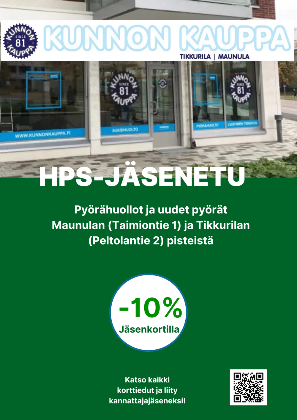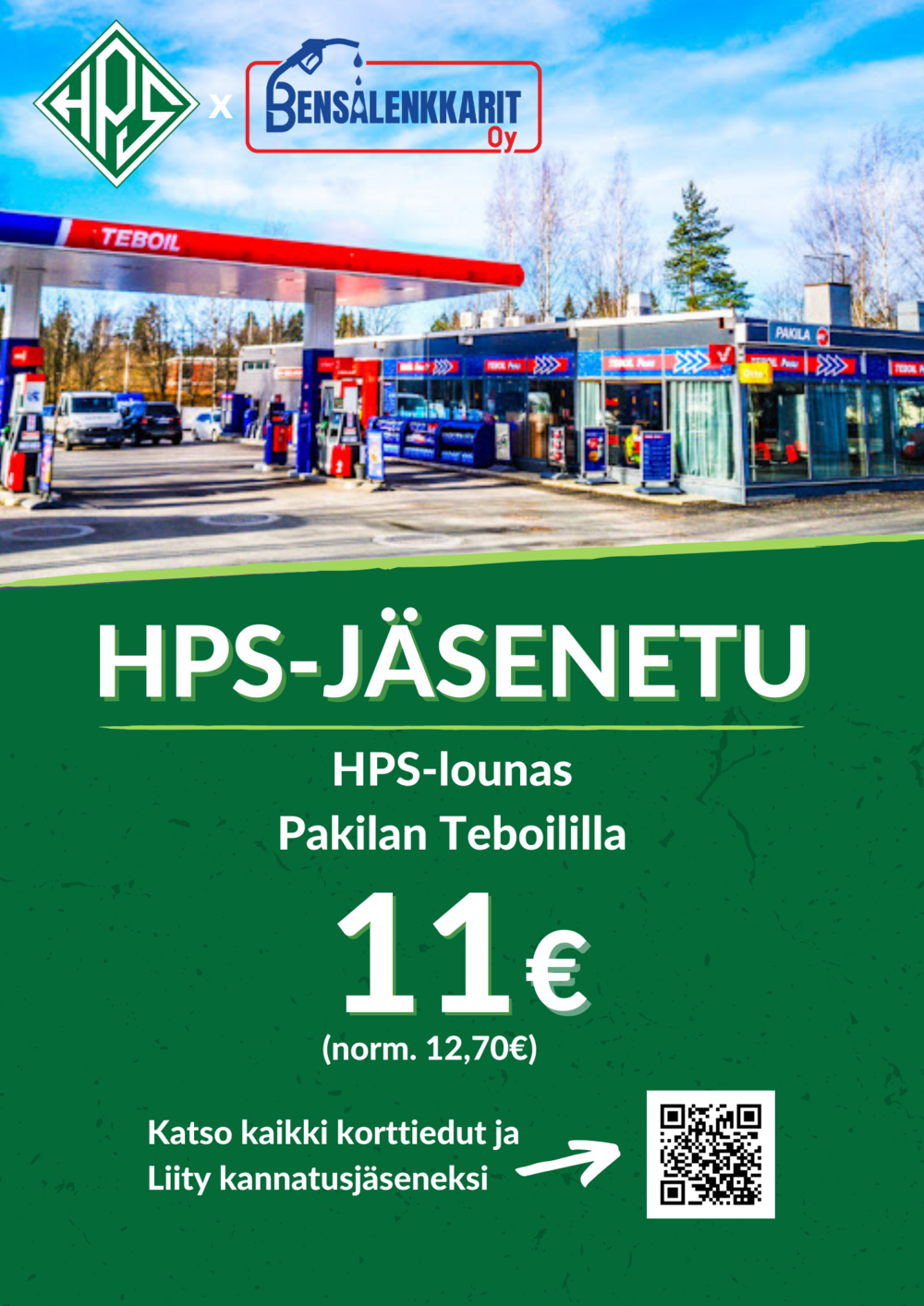 Liity HPS kannatusjäseneksi ja olet oikeutettu jäsenkorttietuihin. Rekisteröitymällä kannatusjäseneksi ja maksamalla 50 € vuosimaksun pääset hyödyntämään korttietuja.