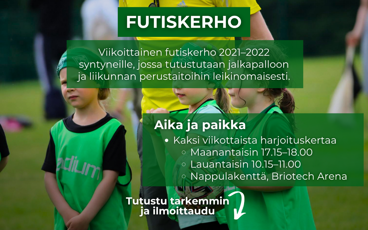 Lauantaisin klo 10.15–11.00 @ Nappulakenttä, Briotech Arena (alk. 9.5.)