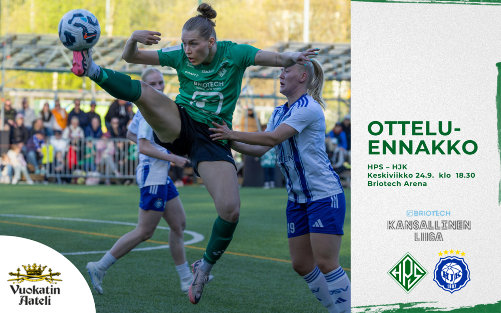 Briotech Kansallinen Liiga: HPS – HJK. Ke 24.9. klo 18.30. Briotech Arena, Helsinki.