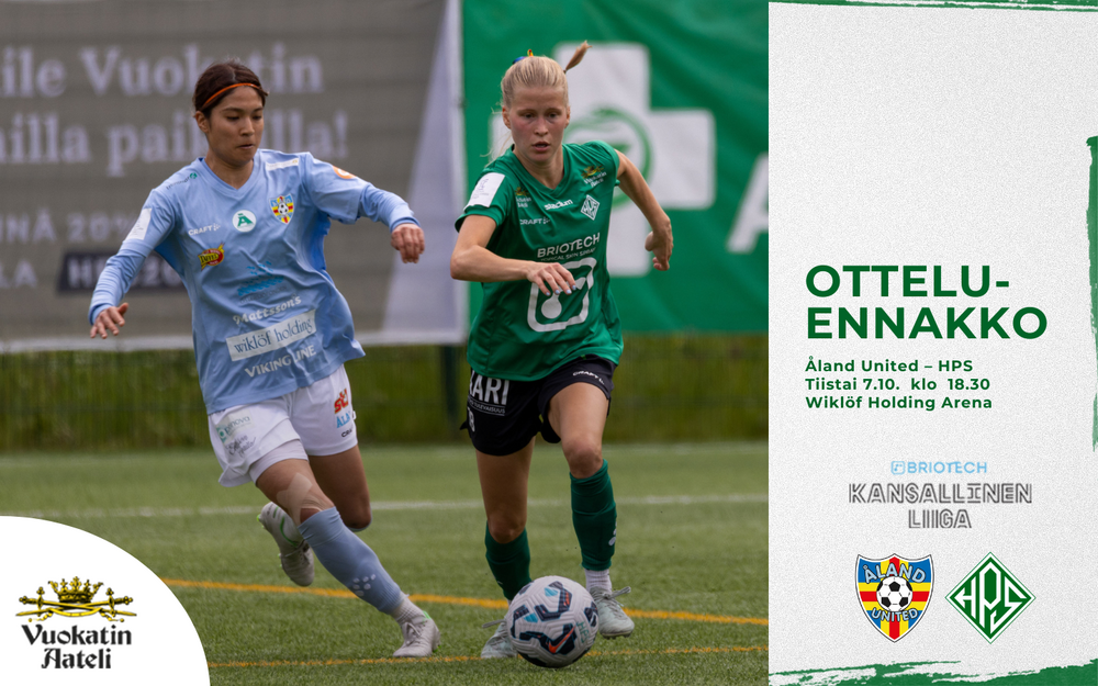 Briotech Kansallinen Liiga: Åland United – HPS. Ti 7.10. klo 18.30. Wiklöf Holding Arena, Maarianhamina.