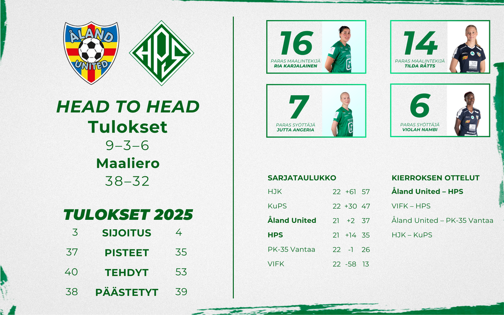 Tiistaina Maarianhaminassa pelataan isoista panoksista, kun HPS ja Åland United iskevät yhteen taistelussa sarjataulukon kolmannesta sijasta. HPS on ahvenanmaalaisia kaksi pistettä perässä neljännellä sijalla, ja otteluita on jäljellä enää kolme.