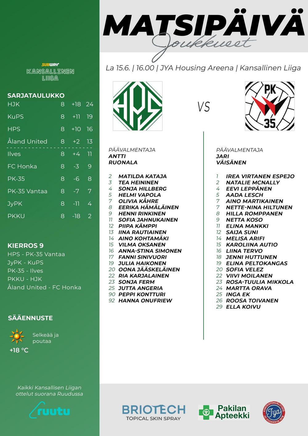 Yhdeksännellä kierroksella HPS saa JYA Housing Areenalle vieraaksi sarjassa kahdeksantena olevan PK-35 Vantaan. Tämän ottelun jälkeen kaikki joukkueet on kohdattu kertaalleen, ja runkosarja kääntyy kohti toista puolikasta.