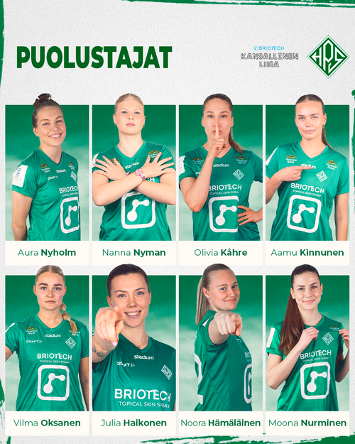 Puolustuslinjasta Aura Nyholm ja Aamu Kinnunen ovat kauden alla kärsineet loukkaantumisista. Nyholm on palaamassa pelivahvuuteen jo alkukauden aikana. Kinnusen toipumisennuste on vielä epävarma.