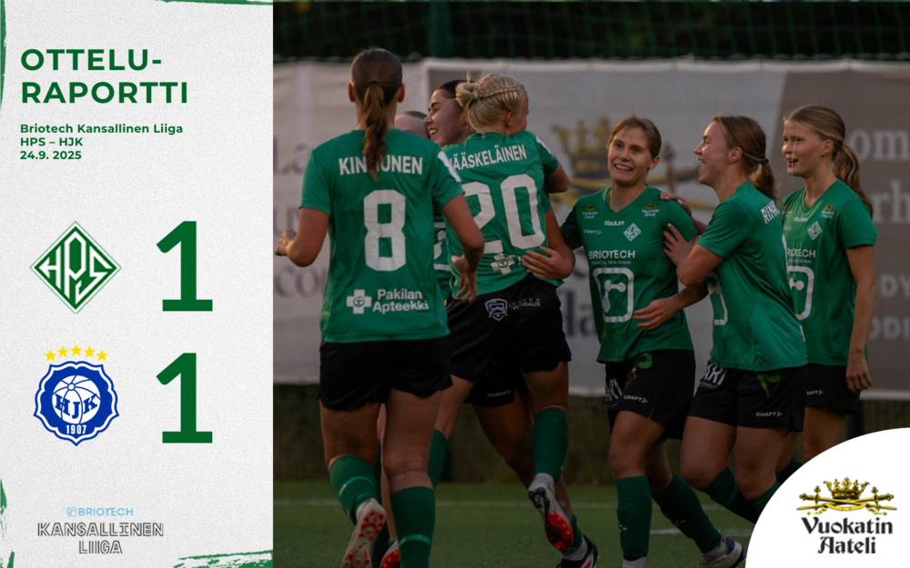 Lopputulokseksi kirjattiin 1–1, mikä tarkoittaa arvokasta pistettä HPS:lle mitalitaistelun kannalta! Tasapeli oli samalla HJK:lle vasta kauden kolmas ottelu, josta se ei kyennyt ottamaan kolmea pistettä.